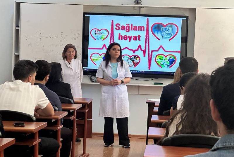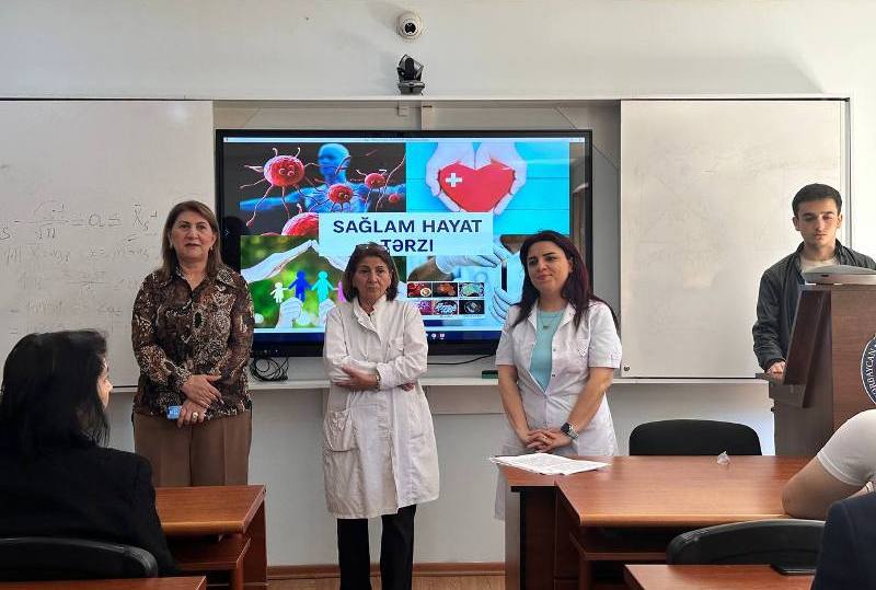 Biznes və menecment fakültəsində tələbələrin sağlam və təhlükəsiz həyat tərzinin təşviqi məqsədilə 3 saylı Tələbə poliklinikasının baş həkimi Adilə Ukalayeva, terapevt Tamella Abdullayeva və həkim laborant Telli Qulamovanın iştirakı ilə yeniyetmələr və gənclər arasında təhlükəsiz reproduktiv sağlamlıq davranışlarının və sağlam həyat tərzi vərdişlərinin formalaşdırılması haqqında maarifləndirici tədbir keçirilib.