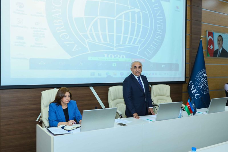 İlk olaraq UNEC-in Beynəlxalq Magistratura və Doktorantura Mərkəzinin direktoru, dosent Söhrab İsayev 2025/2026-cı tədris ilində UNEC-ə bakalavriatura və magistratura səviyyələri üzrə qəbul nəticələri barədə hesabatla çıxış edib. Bildirilib ki, hər iki təhsil səviyyəsi üzrə qəbul planı uğurla həyata keçirilib. Universitetə bakalavriatura üzrə 3738, magistratura üzrə 1046, MBA proqramına isə 1437 tələbə qəbul olub. UNEC-ə 600 və daha yüksək bal toplayan abituriyentlərin sayı 307 nəfər təşkil edib. Hesabatda ixtisas qrupları, tədris dilləri, fakültələr və qəbul balları üzrə nəticələr ətraflı təqdim olunub.