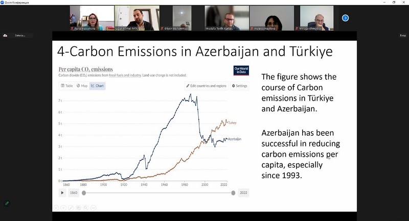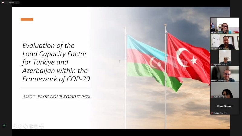 Təqdimatla çıxış edən UNEC “İqtisadi Klinika” Tədqiqat Mərkəzinin tədqiqatçısı dos. Uğur Korkut Pata bildirib ki, hazırda ekoloji problemlər və iqlim dəyişikliyi qlobal səviyyədə artan narahatlıq mənbəyinə çevrilib. Buna görə də beynəlxalq ictimaiyyət müxtəlif platformalarda iqlim dəyişikliyi və davamlı inkişafla mübarizədə mühüm addımlar atmaqdadır. Azərbaycan və Türkiyənin iqlim dəyişiklikləri ilə mübarizə aparan aparıcı ölkələr sırasında olduğunu qeyd edən məruzəçi, hər iki ölkənin bu istiqamətdə müqayisəli təhlilini aparıb, Azərbaycanın enerji resursları ilə zəngin ölkə kimi yaşıl investisiyalar və davamlı inkişaf sahəsində mühüm imkanlara malik olduğunu, bərpa olunan enerji mənbələrinə sərmayə qoymaqla karbon qazının ətraf mühitə təsirlərini azalda biləcəklərini qeyd edib.