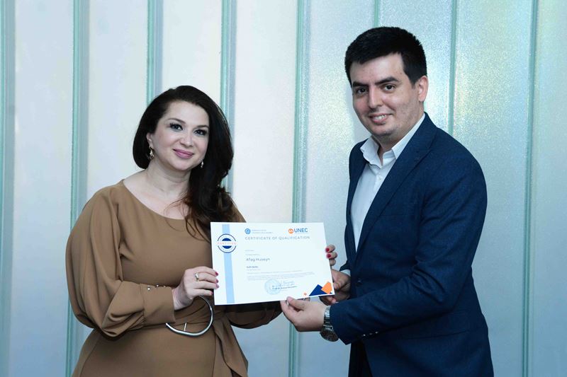 Sonra təlim iştirakçılarına UNEC-in rəsmi sertifikatları təqdim edilib.