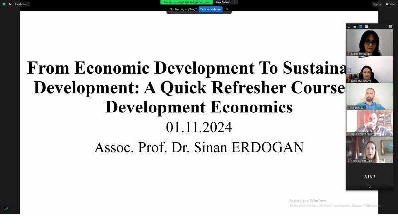 “Dayanıqlı İnkişaf Məqsədləri” mövzusunda ikinci təlimi dos. Sinan Erdoğan keçib. Məruzəçi Davamlı İnkişaf Məqsədlərinin təhsil, sosial müdafiə və məşğulluq imkanları da daxil olmaqla, geniş spektrli sosial ehtiyacları və bununla yanaşı, iqlim dəyişikliyi ilə mübarizə və ətraf mühitin mühafizəsini ön plana çəkdiyini vurğulayıb.