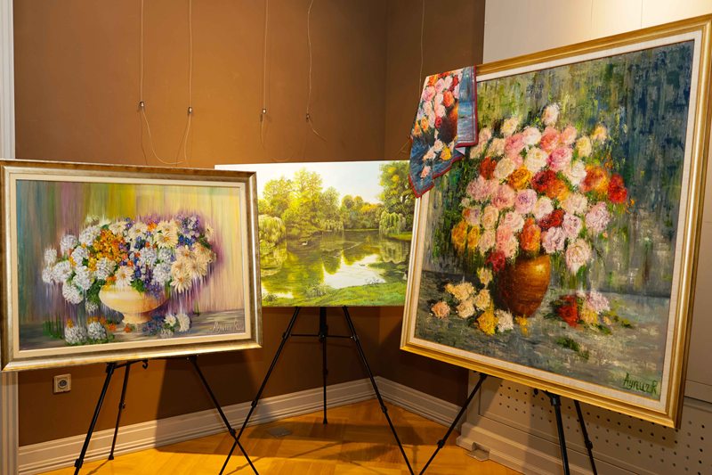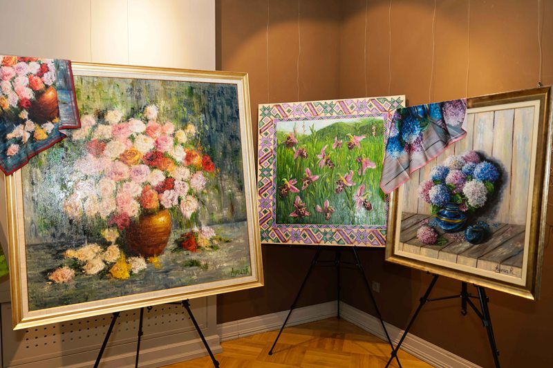 Aynur Rzayevanın əsərləri öz rəng dərinliyi, milli ruhu və emosional təsir gücü ilə ziyarətçilərin diqqətini cəlb edib. Rəssamın fırçasında Azərbaycanın qədim milli ornamentləri, təbiətin zəngin rəng palitrası və su ünsürünün poetik təcəssümü xüsusi yer tutub. Onun yaradıcılığında milli motivlər müasir dizayn baxışı ilə vəhdət təşkil edərək həm nostalji, həm də estetik zövq yaradıb.