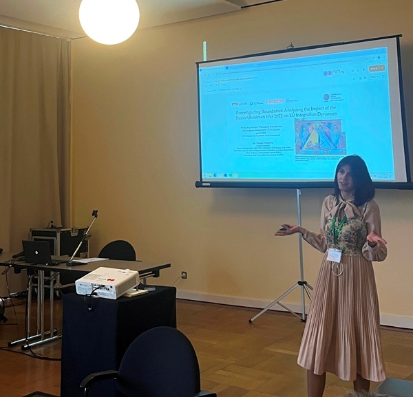 Nərgiz Hacıyeva seminarda "Reconfiguring Boundaries: Analyzing the Impact of the Ukraine-Russia War 2022 on EU Integration Dynamics" mövzusunda elmi məruzə təqdim edib. Çıxış alimlər tərəfindən böyük maraqla qarşılanıb və Avropa İtrifaqının inteqrasiya dinamikalarının həm coğrafi (horizontal), həm də siyasət (vertikal) aspektlərinə toxunaraq, Azərbaycanın enerji siyasətinin bu proseslərdə oynadığı rolu vurğulayıb.