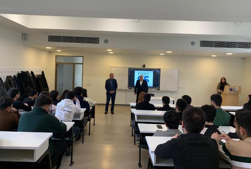 Azərbaycan Dövlət İqtisad Universitetinin (UNEC) Mühəndislik fakültəsində fakültənin fəxri məzunu, “CERTSPMC Services Limited” şirkətinin direktoru Nazim Hüseynovla görüş təşkil edilib.