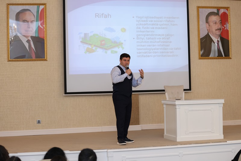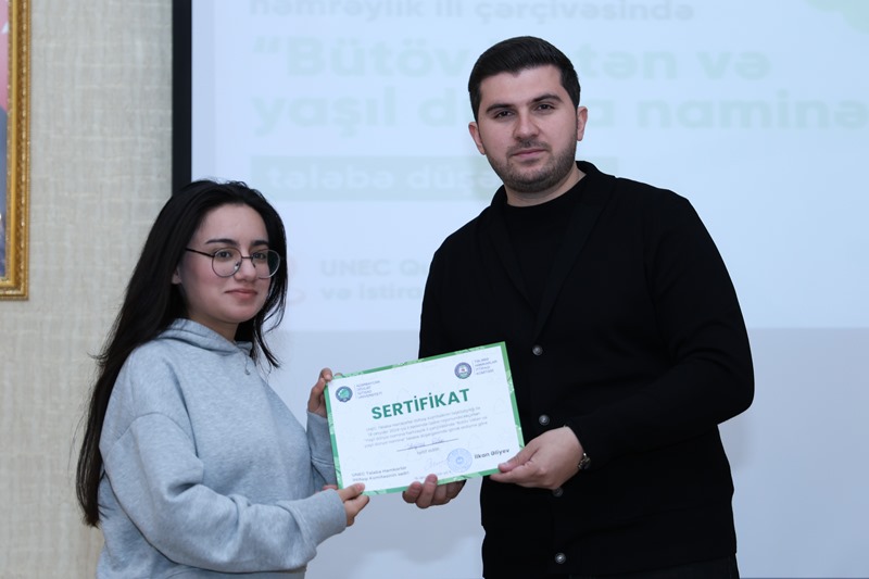 Layihə çərçivəsində UNEC THİK-in sədri İlkan Əliyev tələbələrə düşərgənin proqramı barədə məlumat verib. Sonra UNEC Kitabxana İnformasiya Mərkəzinin direktor müavini, UNEC Biznesin idarə edilməsi kafedrasının müəllimi Yusif Musayev “Yaşıl tədqiqatlarda rəqəmsal resurslardan istifadə bacarıqlarının artırılması” mövzusunda təqdimatla çıxış edib. İnteraktiv sual-cavab formatında keçirilən təqdimat zamanı tələbələrin sualları cavablandırılıb, mövzu ilə bağlı fikir mübadiləsi aparılıb.