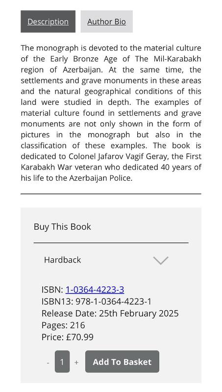 Kitab Azərbaycanın ən qədim diyarlarından olan Mil-Qarabağ bölgəsinin Erkən tunc dövrü arxeologiyasını əhatə edir. Erkən tunc dövründə Mil-Qarabağda olan qəbirlərdən və yaşayış yerlərindən bəhs edən kitabda həmin ərazilərdən tapılmış maddi-mədəniyyət nümunələri də öz əksini tapıb. Müəllif bölgənin təbii-coğrafi şəraitinə və öyrənilmə tarixinə də kitabda yer verib.