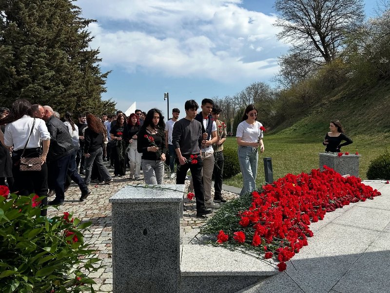 UNEC tələbələri abidənin önünə gül dəstələri düzdükdən sonra, onlara ermənilərin törətdikləri soyqırım barədə məlumat verilib.