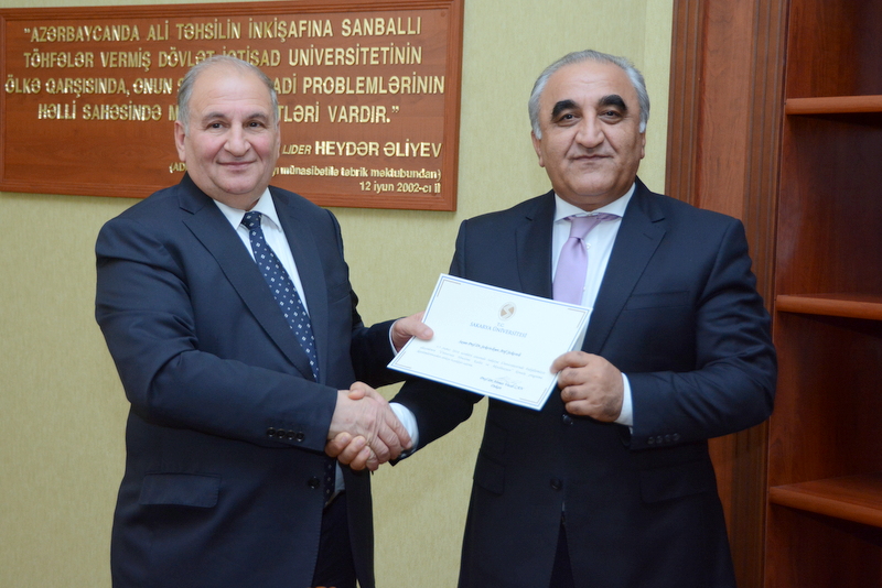 Azərbaycan Respublikası Prezidentinin 24 sentyabr 2020-ci il tarixli Sərəncamı ilə Azərbaycan Dövlət İqtisad Universitetinin 90 illiyi münasibətilə və Azərbaycanda təhsilin inkişafındakı xidmətlərinə görə “Şöhrət” ordeni ilə təltif edilib.