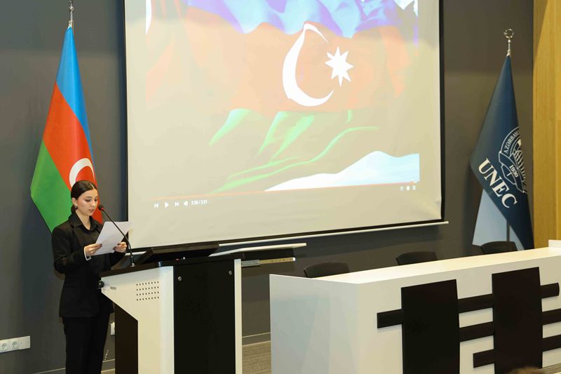 The event was attended by UNEC faculty, students, and most poignantly, the parents of the university’s martyred alumni of the Patriotic war: Mazdak Eyvazli and Abil Jabizada. The ceremony began with the national anthem, a moment of silence in honor of the martyrs, and a video tribute to their lives.