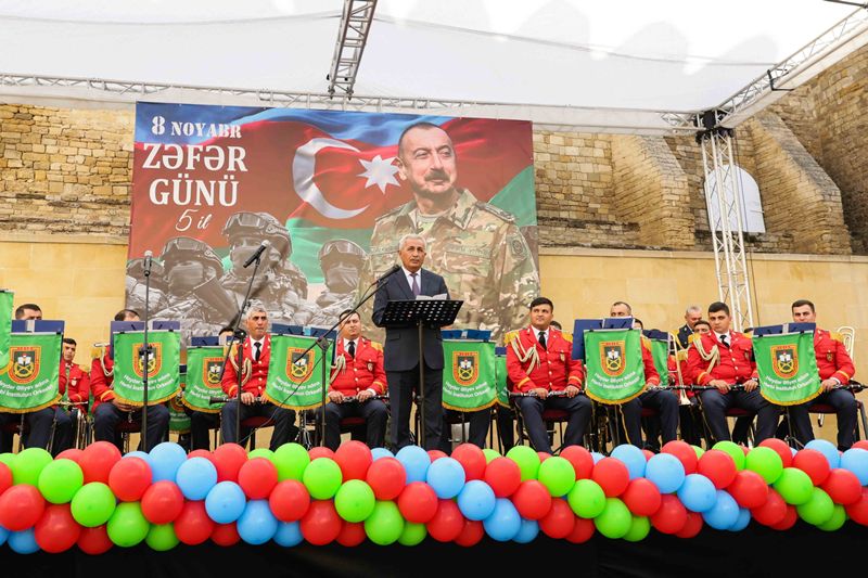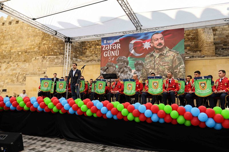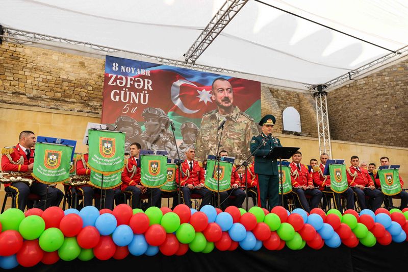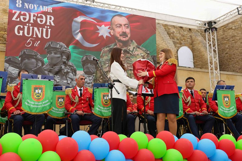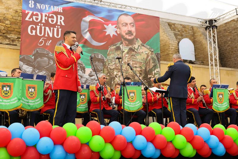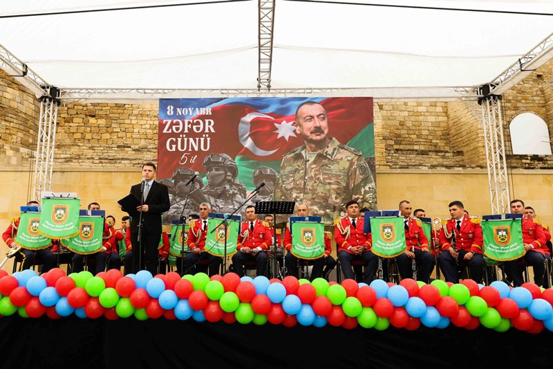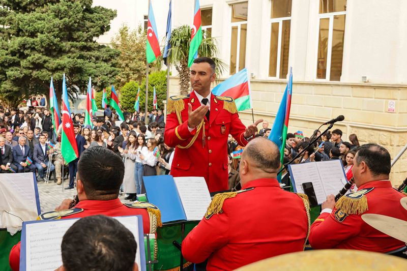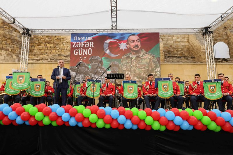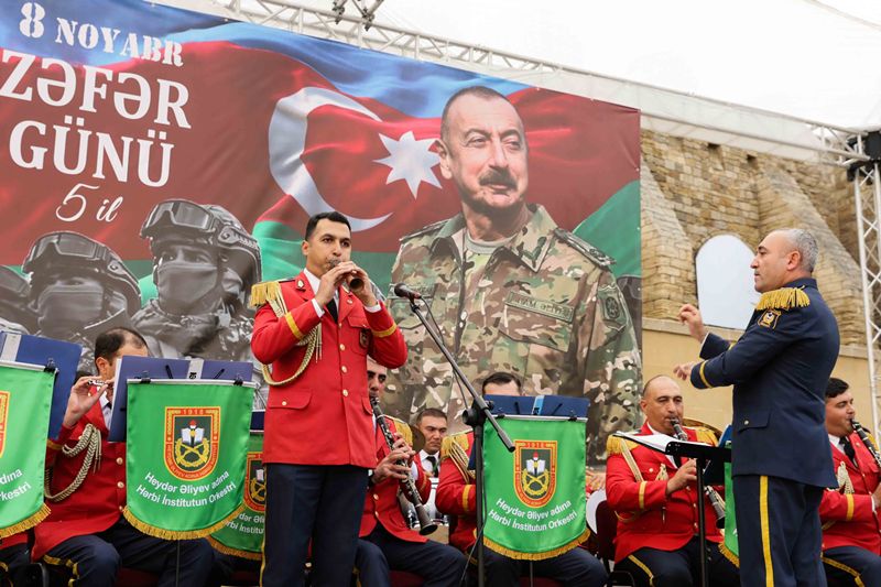 The ceremony concluded with a solemn concert programme delivered with the accompaniment of the orchestra of the Heydar Aliyev Military Institute of the Ministry of Defence of the Republic of Azerbaijan, conducted by military bandmaster, Captain Mushfig Sultanov.