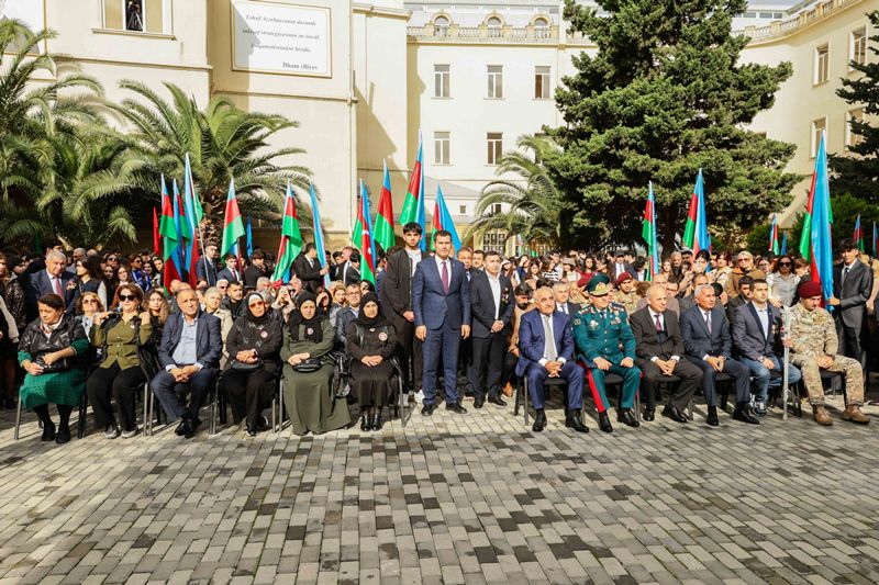 The Rector underlined that the victorious Supreme Commander-in-Chief, President Ilham Aliyev, who has responsibly and successfully continued the political course of the National Leader, plays an irreplaceable role in the destiny of the Azerbaijani state and nation. He noted that the President’s proclamation ‘Karabakh is Azerbaijan!’ was not merely a message, but rather a call that awakened the spirit of a nation and transformed centuries-long longing into confidence and hope. Stressing that the price of Victory was the blood of martyrs and the heroism of veterans, Professor Muradov described them as the eternal heroes of the Motherland and the enduring symbols of national resilience. He added that in the five years that have passed since Victory, Azerbaijan has embarked upon a period of unity, renewal, and advancement:“Today, our liberated territories are witnessing not only the triumph of war, but also that of peace and grand reconstruction. The large-scale restoration under way in Karabakh and East Zangezur constitutes the pride map of Azerbaijan,” the Rector stated.