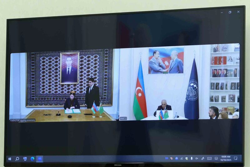 The signing ceremony was held online, with the documents signed by professor Adalat Muradov, rector of UNEC; Ms. Aknabat Atabayeva, rector of the Turkmen State Institute of Economics and Management; and Mr. Bayram Tanryberdiyev, rector of the Turkmen State Institute of Finance.