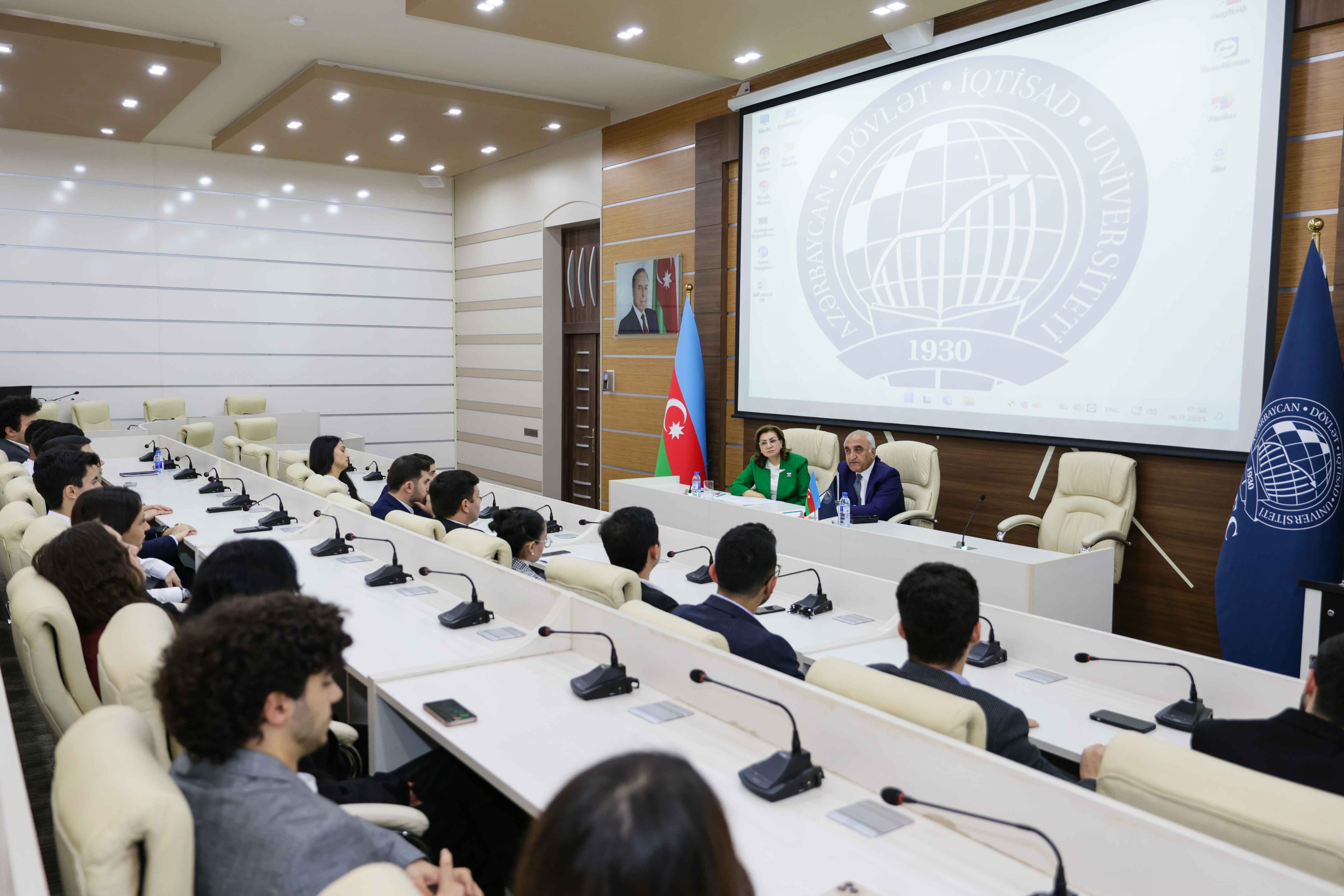 During the meeting, Professor Muradov highlighted the important role students play in the university’s governance processes. He noted that one of the key objectives of the “UNEC 100 Development Strategy” is the strengthening and expansion of student organizations.